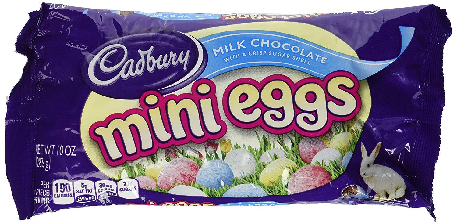 CADBURY ROYAL DARK MINI EGGS Easter Candy, 10 oz | Cadbury CADBURY ROYAL DARK MINI EGGS Easter Candy, 10 oz. It's the classic sweet taste of CADBURY Milk Chocolate with the crunch of toasty roasted almonds. Get product details here. Buy Now. Nutrition Information. 140 Calories. 4.5 Sat Fat (g) 18 Sugars (g) 0 Sodium (mg) Amazon.com: cadbury mini eggs $26 95 ($0.90/Ounce) Get it Tue, Apr 26 - Fri, Apr 29 FREE Shipping Cadbury Easter Candy Coated Mini Eggs, 36 Ounce Bag 2.25 Pound (Pack of 1) 184 $31 99 ($0.89/Ounce) Get it Thu, Apr 28 - Fri, Apr 29 FREE Shipping More Buying Choices $28.99 (3 new offers) Highly rated with a low unit price Cadbury Egg 1.2 oz, Mini Egg 1.5 oz ... - Free Coupons Cadbury Egg 1.2 oz, Mini Egg 1.5 oz, Hersheys Egg or Bunny Ears 1.2-1.55 oz - CVS Drugstore Coupons expired on 03/24/2018 Print $1500+ in Free Coupons Now! Free after $.99 Extra Bucks. Cadbury Mini Eggs Coupon 2020 Cadbury Mini Eggs Coupon 2020 - Cadbury Mini Eggs Coupon 2020, Easter Deals 2019 Amazon, Coupons Hebrew National Hot Dogs, Lunchable Coupons Printable 2019, Ralph Lauren Online Coupon Code June 2019, Michaels Daily Deals September 2019, Max Muscle Online Coupons