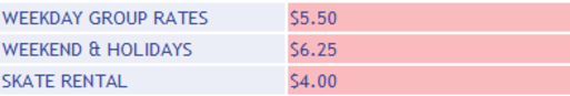Mosaic Skateland - A Carefully Curated Shopping Center Adult Admission (includes Skate Rental) - $17. Child Admission (includes Skate Rental) - $15. Group Admission (Groups of 10+, includes Skate Rental) - $14. Locker - $10. Skate Aids - $10 *not sold online. Socks - $3 *not sold online. Guests are welcome to bring their own skates.