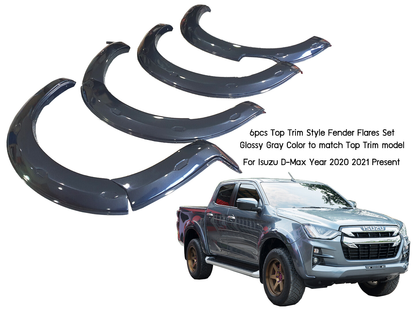 A02 GRAY GREY TOP TRIM FENDER FLARES FIT ISUZU D-MAX DMAX UTE ...